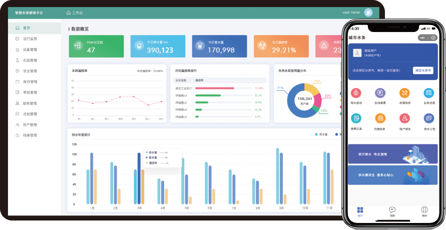 系統同時兼容傳統的M-BUS、RS485等有線水表,通過數據采集器將各表計智能接入,數據經采集器轉換后通過4G/5G公網傳輸至服務器,實現不同傳輸方式表計的統一兼容。